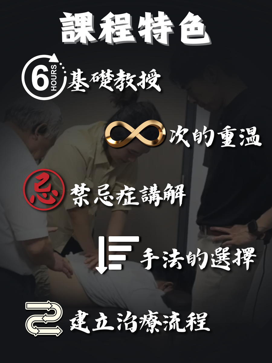 我們為您帶來一個全新的痛症實體課程組合,讓您在短短2堂6小時內學到19種專業的痛症緩解手法。